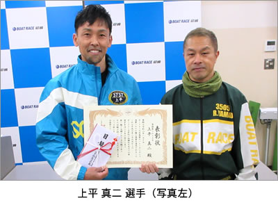 上平選手は平成6年10月20日に第75期として登録され、翌年2月9日のボートレース若松で初勝利を挙げて以降、約30年にわたり出走を重ね、今回の記録は7,216走目での達成となりました。これまでにGⅠ優勝1回を含む通算74回の優勝を記録しています。