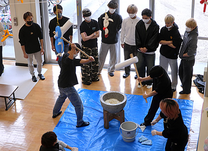 日本モーターボート選手会大阪支部は、1月10日に西成チャイルド・ケア・センターを訪問し、施設で実施された餅つき行事の手伝いを行いました。