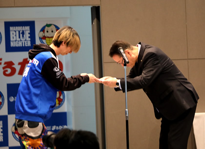 1月1日、日本モーターボート選手会香川支部は、丸亀城復旧の支援金として、丸亀市に10万円を寄付しました。