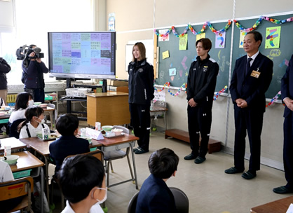 子供たちにボートレーサーの職業を紹介/磐田市立富士見小学校で講演/定野久恵選手(静岡)