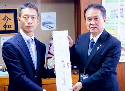 今年も昨年と同様、流行するウイルス感染症の拡大防止のため、各施設を少数の関係者で訪問しました。日本モーターボート選手会群馬支部理事長 津久井拓也氏と他3名、関東開発株式会社代表取締役会長 笹川和弘氏が関係団体を代表して各施設の代表者にプレゼントを手渡しました。