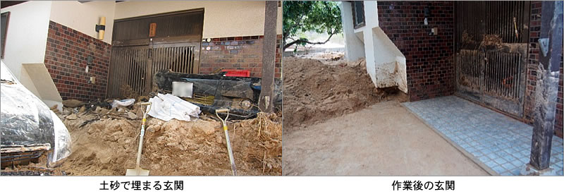 車を移動した後、玄関前の土砂を取り除き、それまで半分以上が土砂で埋まっていた玄関の姿を約1ヵ月振りに見ることが出来ました。
