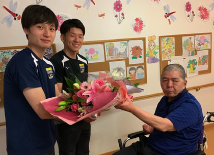 参加選手からは「入居者の方に大変喜んで頂けました。また、明るい入居者の方から自分たちも元気をもらうことが出来ました」との声が寄せられました。