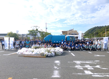当日は約150名の参加者が3班に分かれ、海岸や道路沿いの清掃を行いました。ペットボトルやお菓子の袋などを中心に、総重量約300kgのごみを回収。