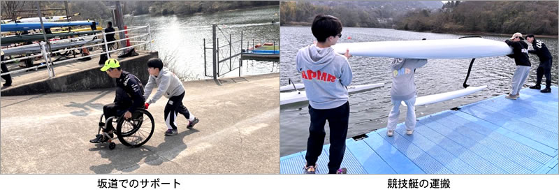 会場の府中湖カヌー競技場では、カヌーの乗り降りの際に約20度の急な坂を通る必要があります。参加したボートレーサーたちは、車いすを使用するパラアスリートが安全かつスムーズに移動できるよう付き添いました。下り坂ではバランスを崩さないよう支え、上り坂では力強く後押しをするなど、状況に応じたサポートに徹しました。また、重い競技艇の運搬のほか、セッティングや、規定どおりの重さがあるかを測る検艇作業にも協力しました。さらに、水辺での安全確認や選手の様子にも気を配り、アスリートが競技に集中できる環境づくりを意識しました。