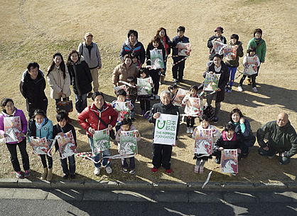 保育園児や地域住民が参加して親子凧つくり教室&餅つき大会/勤労青少年水上スポーツセンター